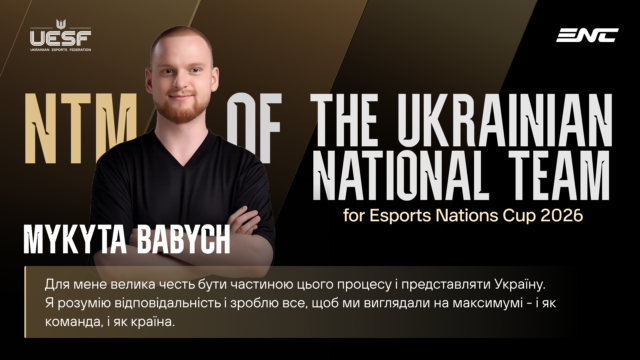 The Esports Foundation затвердила Микиту Бабича на посаду National Team Manager у рамках підготовки до Esports Nations Cup 2026 (ENC 2026). Микита відповідатиме за повний цикл роботи зі збірними України – від організації відборів та кваліфікацій до координації складів і представлення країни на міжнародній арені.